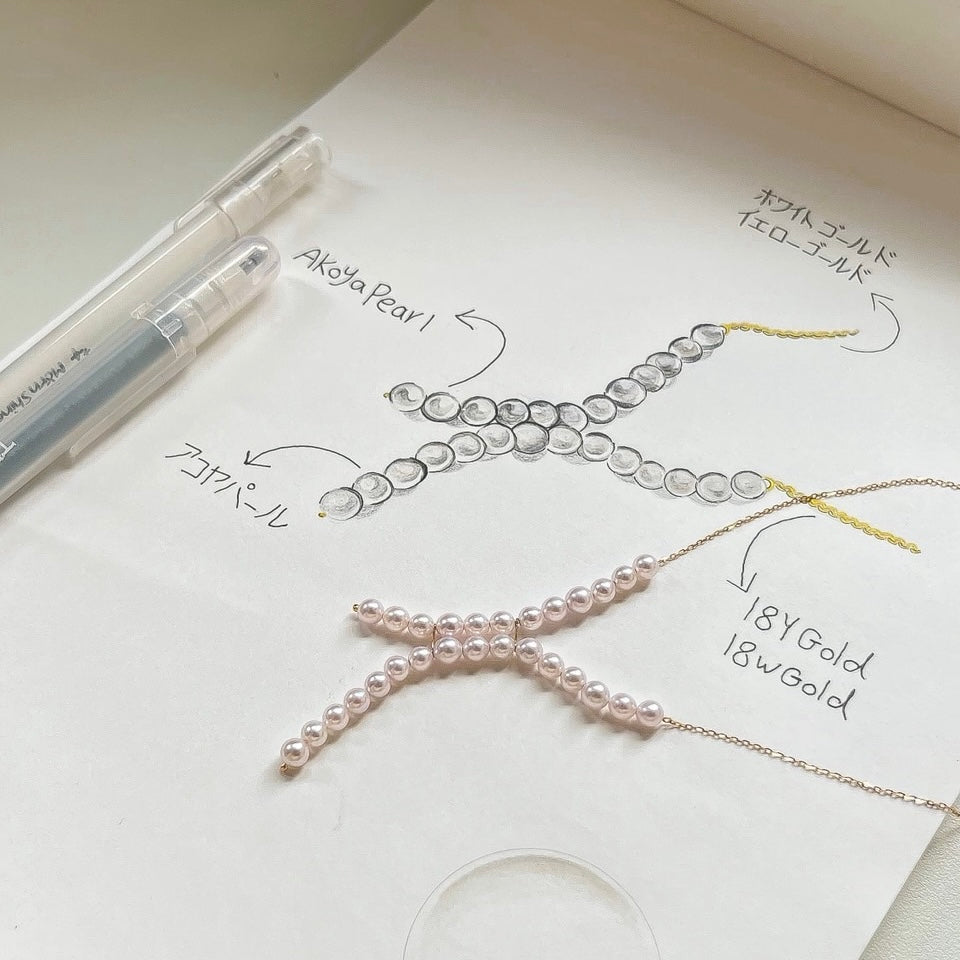 「運命」という名の輝き。 アラビア語で“宿命”を意味する 「Kismet」。 重なり合う二つのラインは、偶然ではなく必然として引き寄せられた「絆」を象徴しています。 厳選されたアコヤ真珠の気品ある光沢と、K18ゴールドの洗練された輝きを纏って。 モダンな美しさが、身に纏う人の内なる品格をドラマチックに描き出します。 時を超えて共鳴する、あなただけの運命をその胸元に。