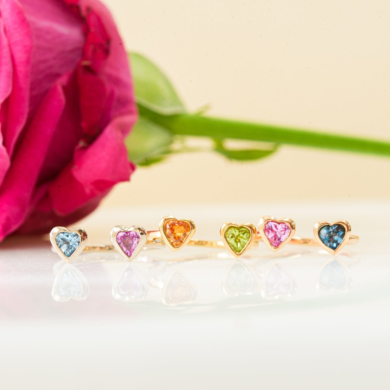 お好きな色で選んだり、誕生石で選んだり、あなただけの組み合わせで特別なリングを制作いただけます。
